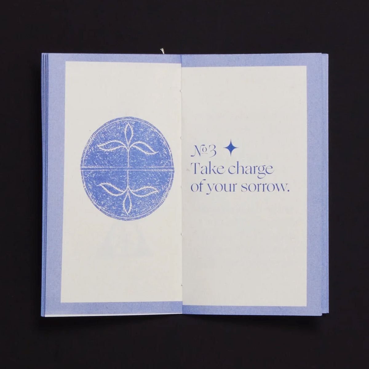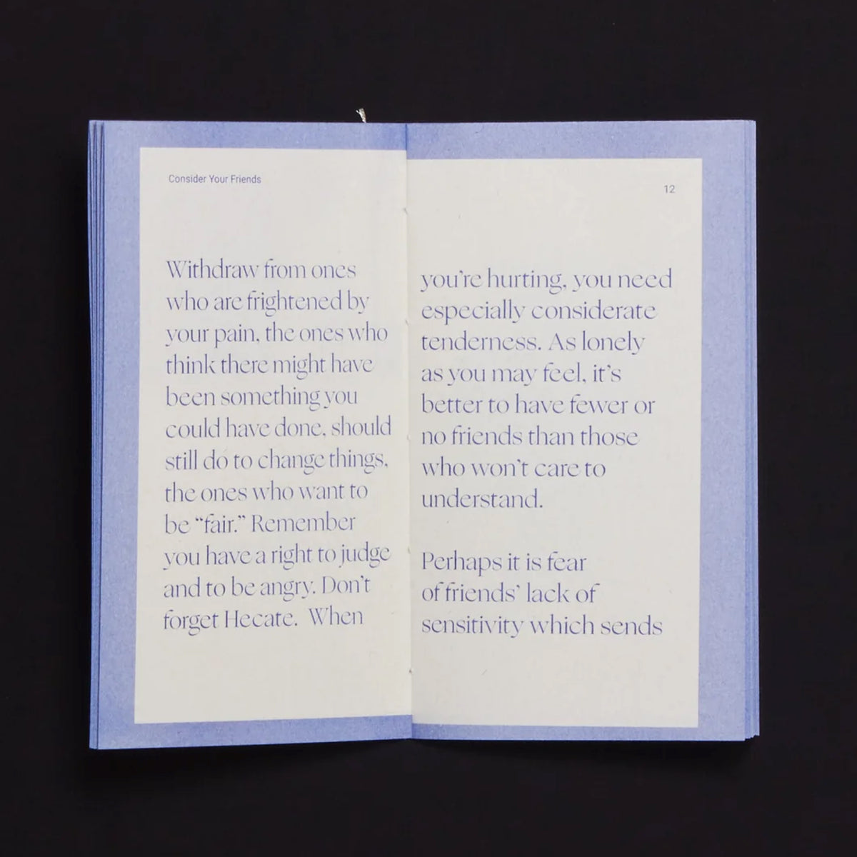 This new version is completely redesigned as a ritual object to be given to a friend in mourning. Hand-sewn, and illustrated with New England gravestone rubbings, the uncut pages are intended to be cut by the recipient as they read the book.