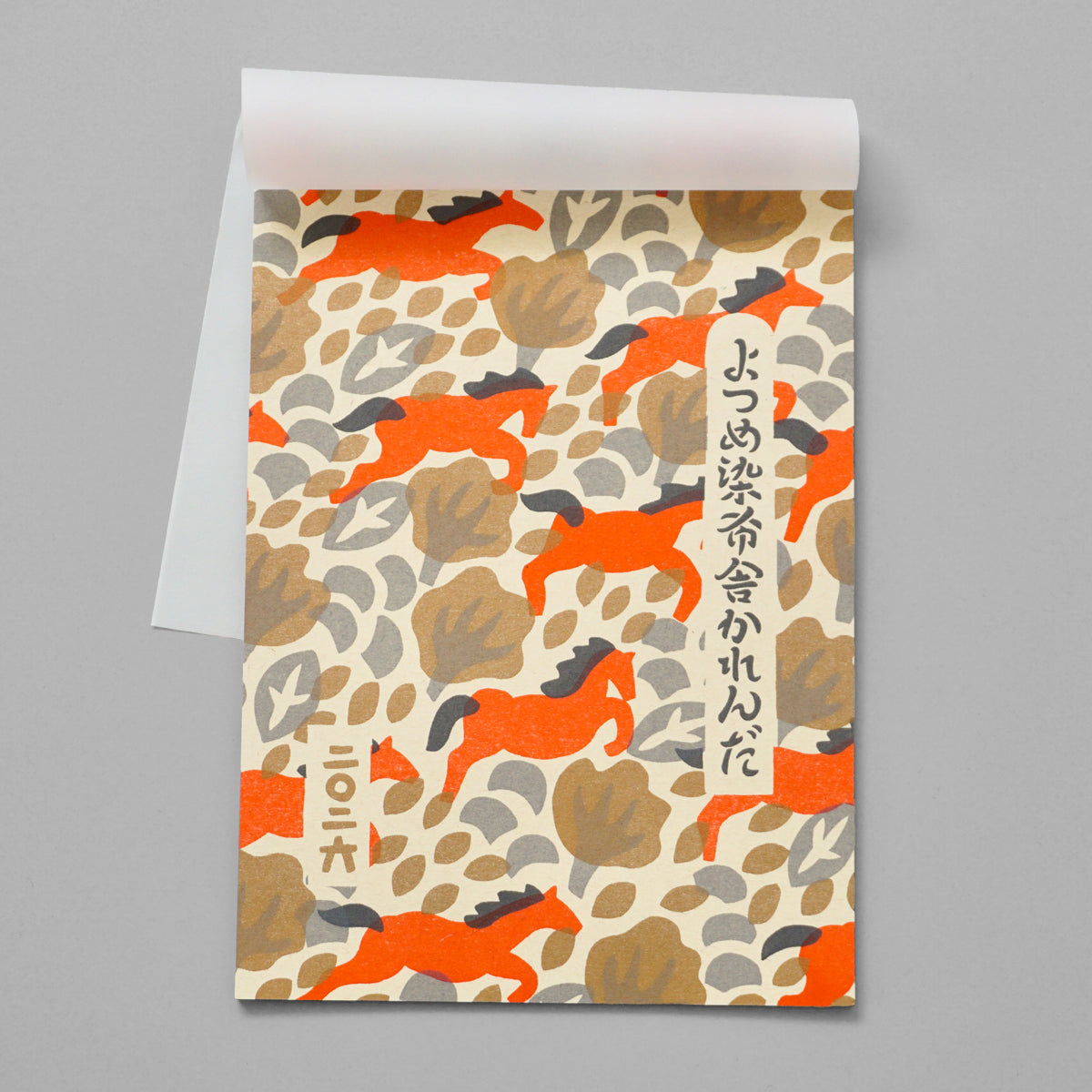 Yotsume Dye House (よつめ染布舎) is a dyeing studio based in Hiroshima, Japan, specialising in the historical techniques of katazome and tsutsugaki to dye and produce fabrics for everyday use. The studio is run by textile designer Toyoichi Ono. As well as fabrics and textiles the studio work on a variety of paper products which incorporate natural dyes and printing techniques, all based around the distinct style of katazome-dyed textiles.