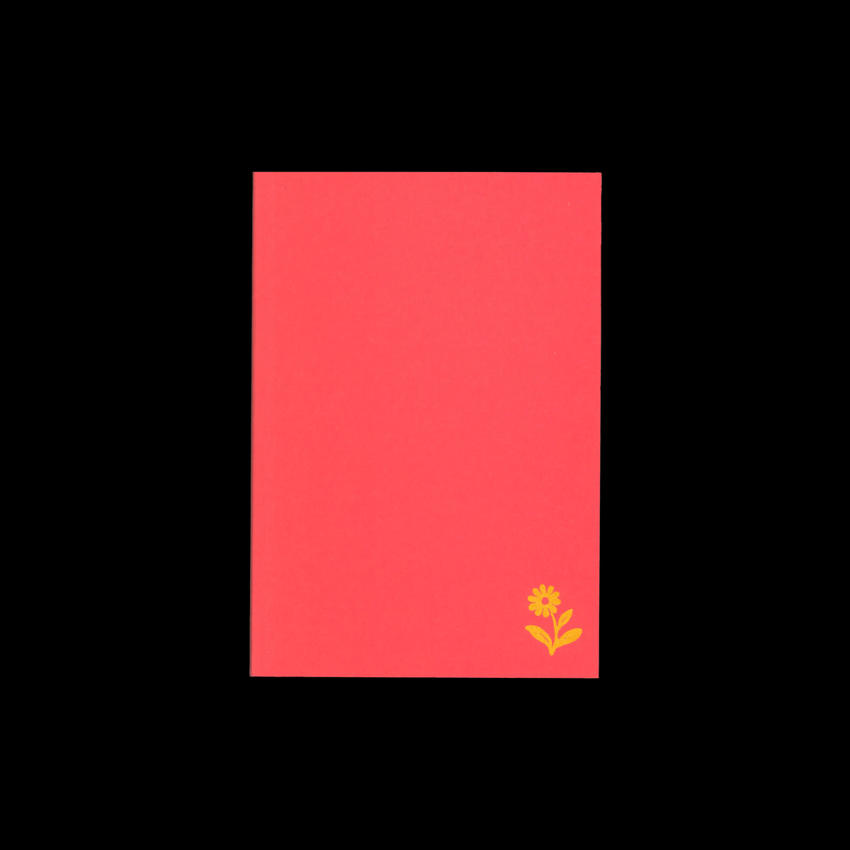 Perfect-bound notebooks made by hand at LCBA. Flower illustration foil-blocked onto Kiwi / Coral / Evergreen / Deep Blue card stock. Inner pages are plain in 100gsm.