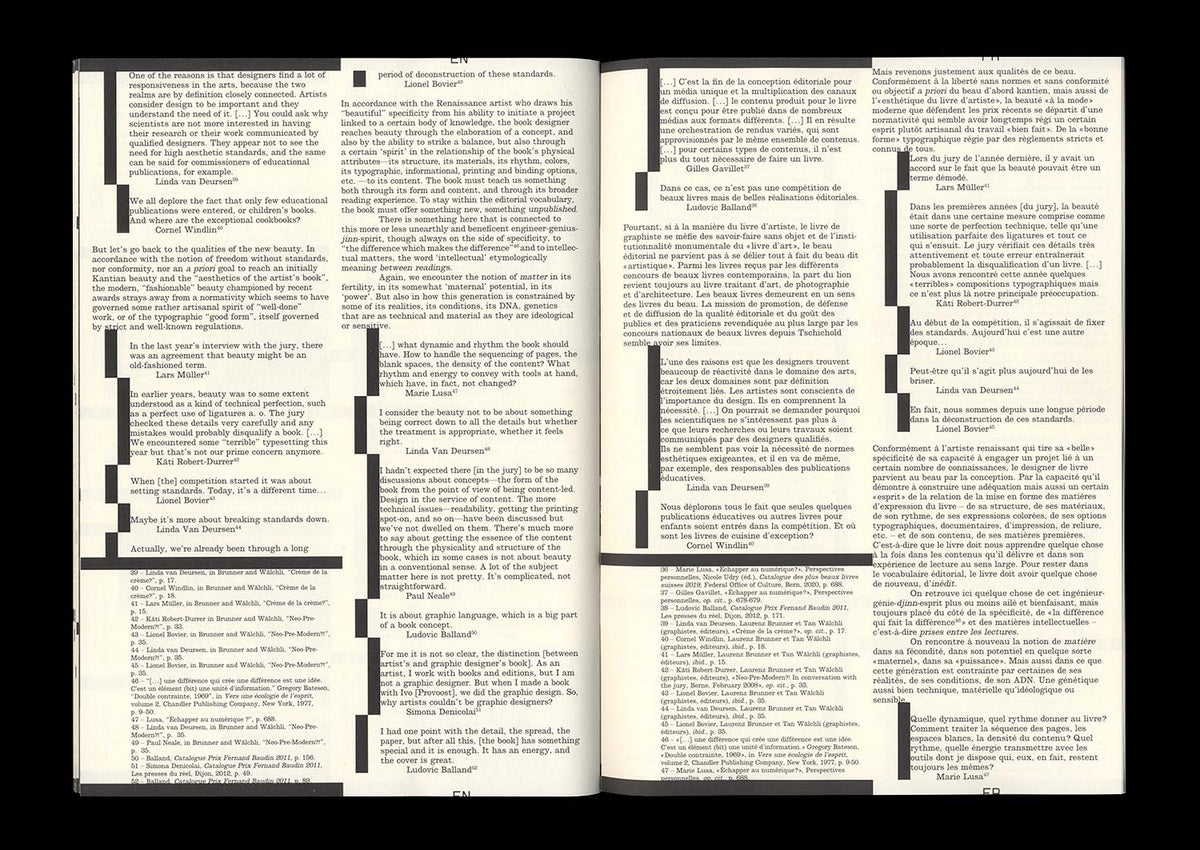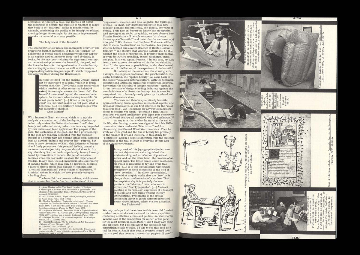 It was during the century of Enlightenment that aesthetics became autonomous, that the Beautiful separated itself from the Good and the Useful, like a form of free access to meaning, to truth. And one might well ask if, beginning with the Industrial Revolution, design, from dessin to dessein, has not to some extent taken up the torch of the applied techniques of the former regime of the art of doing and making, and of beauty. What has become of the term “beautiful” as applied to typography, understood as the art of shaping books, since 1943 and the establishment of the “Most Beautiful Swiss Books” award under the influence of the famous Jan Tschichold?