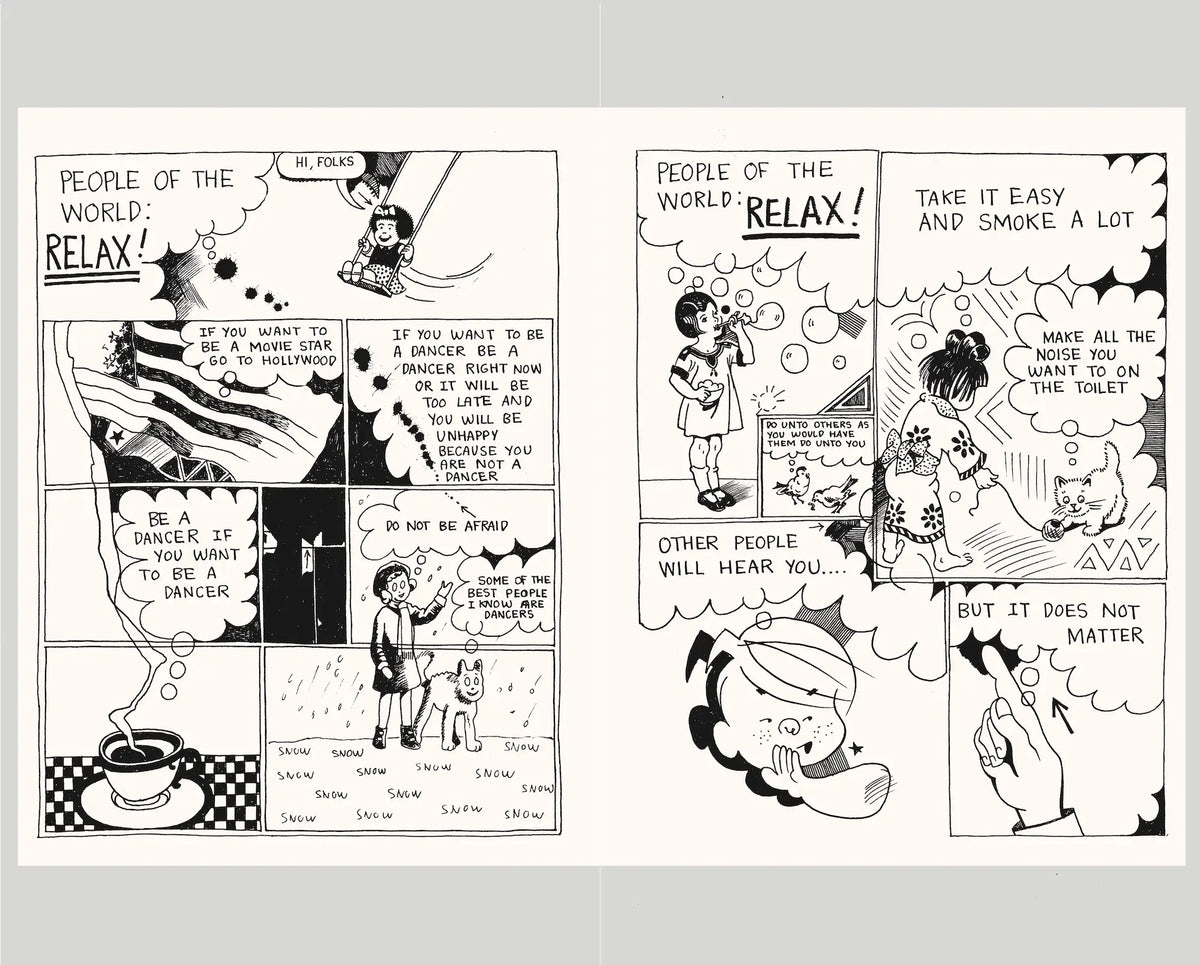 The results were unlike any comics seen before. Previously available only on the rare-book market (at very high prices) but available here under one cover for the first time, the two issues of C Comics still feel as fresh as when the first page rolled off the mimeograph machine more than sixty years ago. Brainard’s energetic line and joyful humor charge across every page, illustrating O’Hara's recasting of a cowboy as a mash-note-writing lover, Padgett’s experiments with traditional cartoon sound effects (ROAR! GRRR! SKREE!), cameos by Ernie Bushmiller’s Nancy, and heaps of Dadaesque delights.