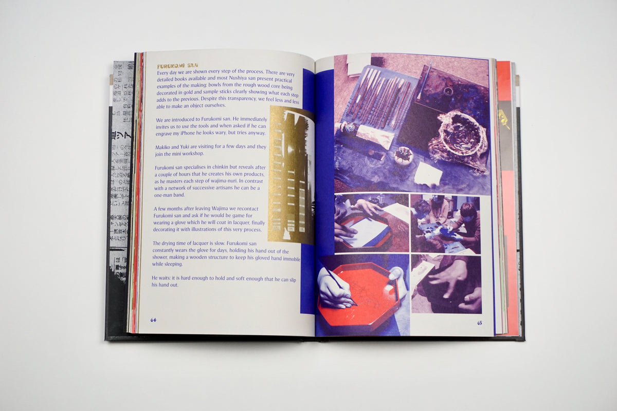 More than ten years ago, we watched «Maboroshi», a Japanese movie by Kore-eda Hirokazu and were hypnotised by Wajima and the Noto region in Japan. A few years later we visited an exhibition of lacquerware in the Japanese Embassy in London. The works were made in collaboration with crafts(wo)men in Wajima. We spoke to Emiko, the curator, who would eventually introduce us to a group of skilled artisans in Wajima, specialised for centuries in producing urushi ware locally. This book is the visible part of the iceberg, how we went to live for a while in Wajima and how we caught the ears of highly skilled people who eventually agreed to try something amateurs like us suggested."
