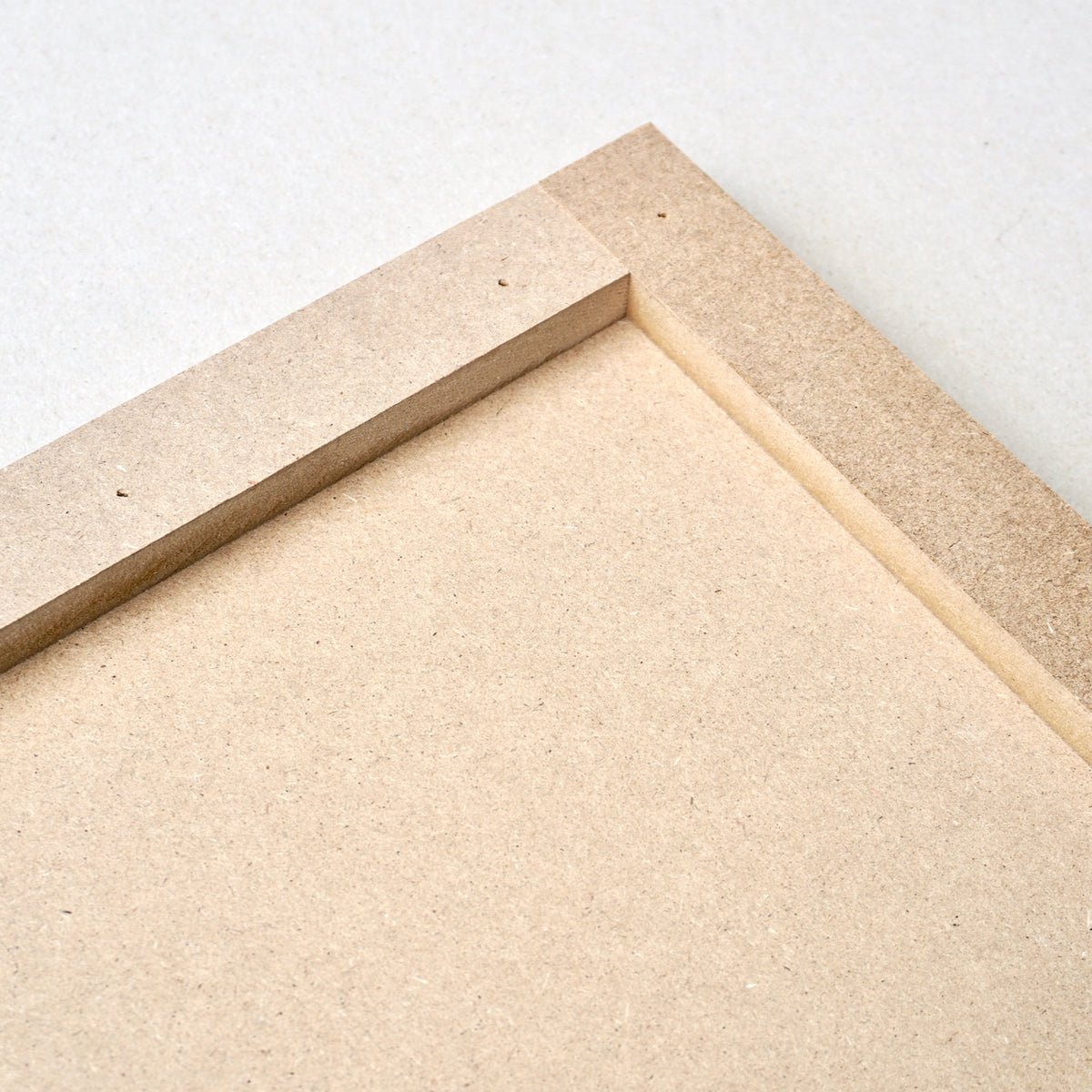 The Wooden Bench Hook is a wooden board that holds your linoleum or polymer as you cut out an image. The bottom is pressed into the edge of a table to prevent slipping, whilst the angled top keeps your lino in place. It can also keep your lino-chippings all in one place, keeping the mess to a minimum. The board is made of wooden MDF and measures 32.5cm x 22.8cm.