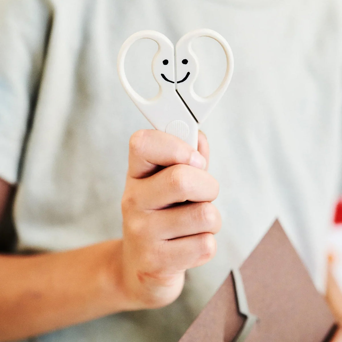 Scissors for little hands with blades that are fully encased in plastic. The blade tips have rounded stoppers to hold paper in place while cutting and the handles are gently contoured to promote a natural grip. Designed for both functionality and peace of mind.