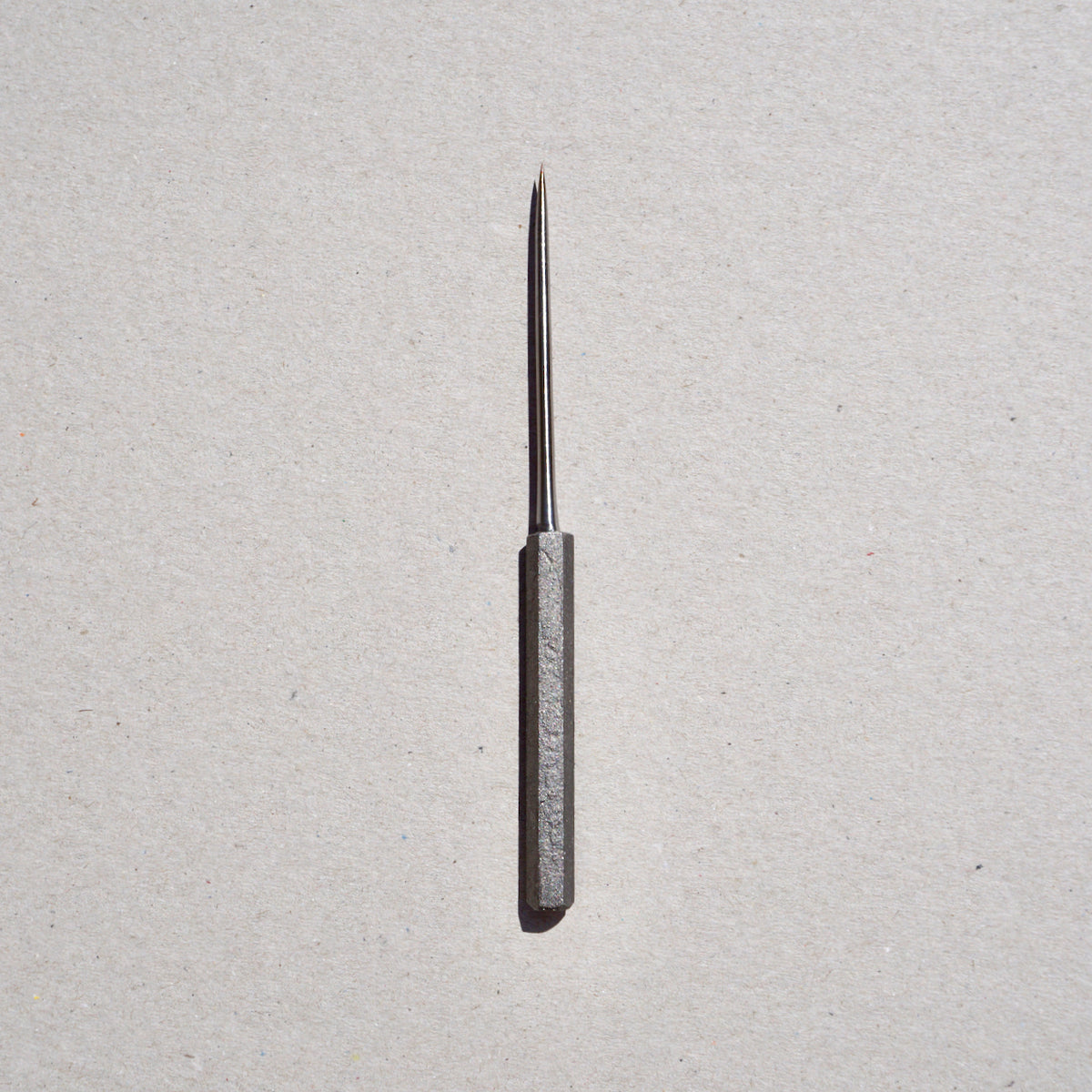 Very strong and sturdy and suited for use with a mallet when making holes for stab bindings, or similar. The shaft and point are machined from a single piece of steel. Tip is extremely sharp, with a long taper which ensures evenly-sized holes throughout.