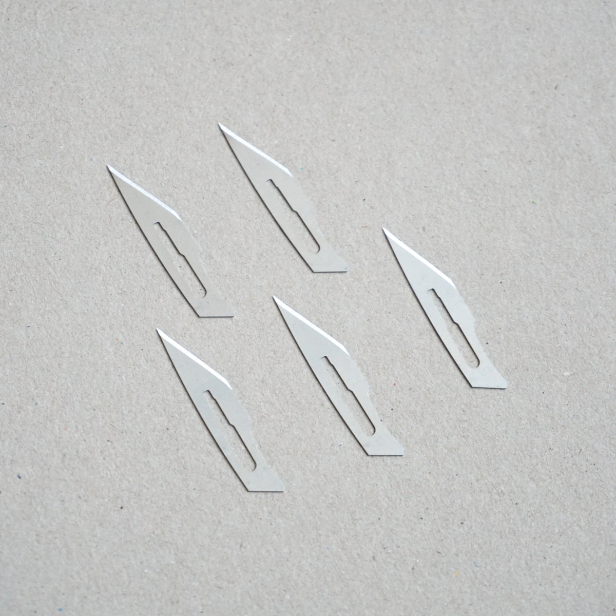 Pack of 5 Swann Morton No 10A Non Sterile Blades, Individually VPI protected. One of the most commonly used in our bookbinding workshops for fine cutting.