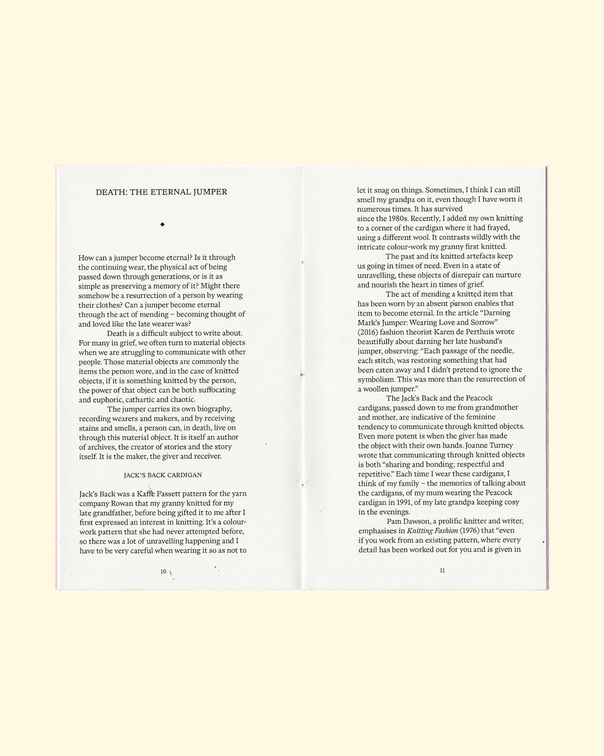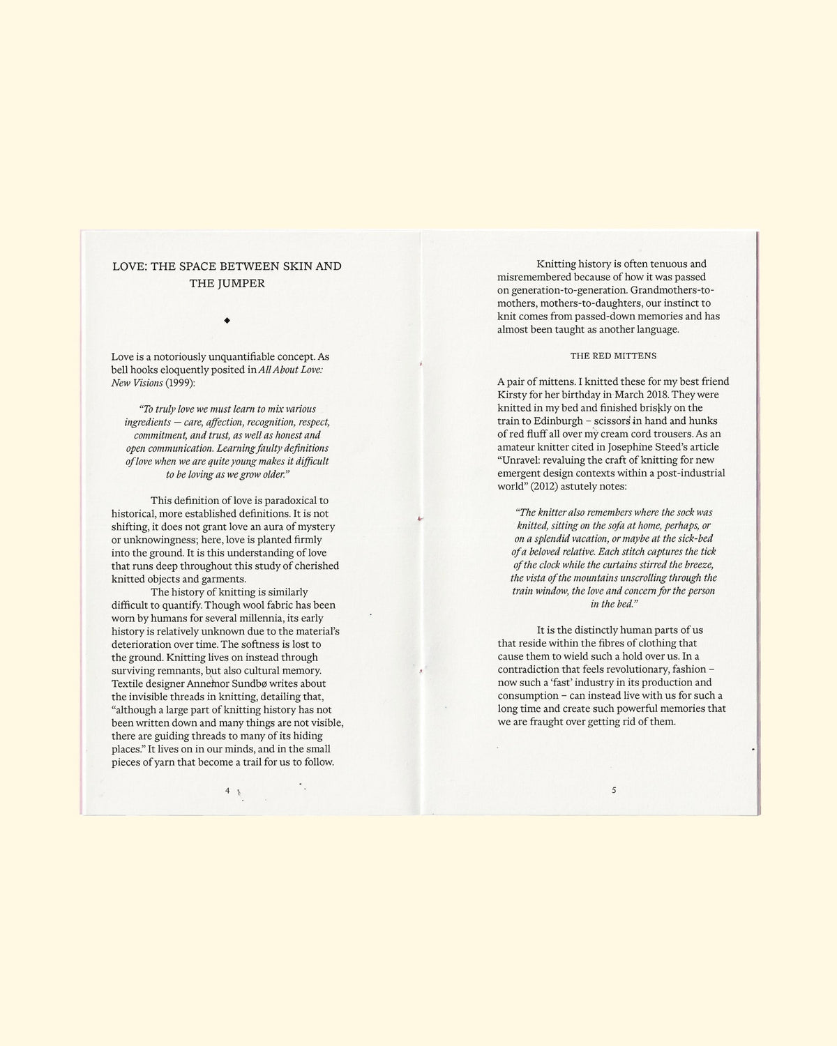 Punctuated by short key texts from textile studies and feminist theory, Softness tugs at the loose threads of this corner of craft history. This is an ode to the disrepaired, a plea to stem the tide of unloved, mass-produced clothing by rethinking the power of soft things.