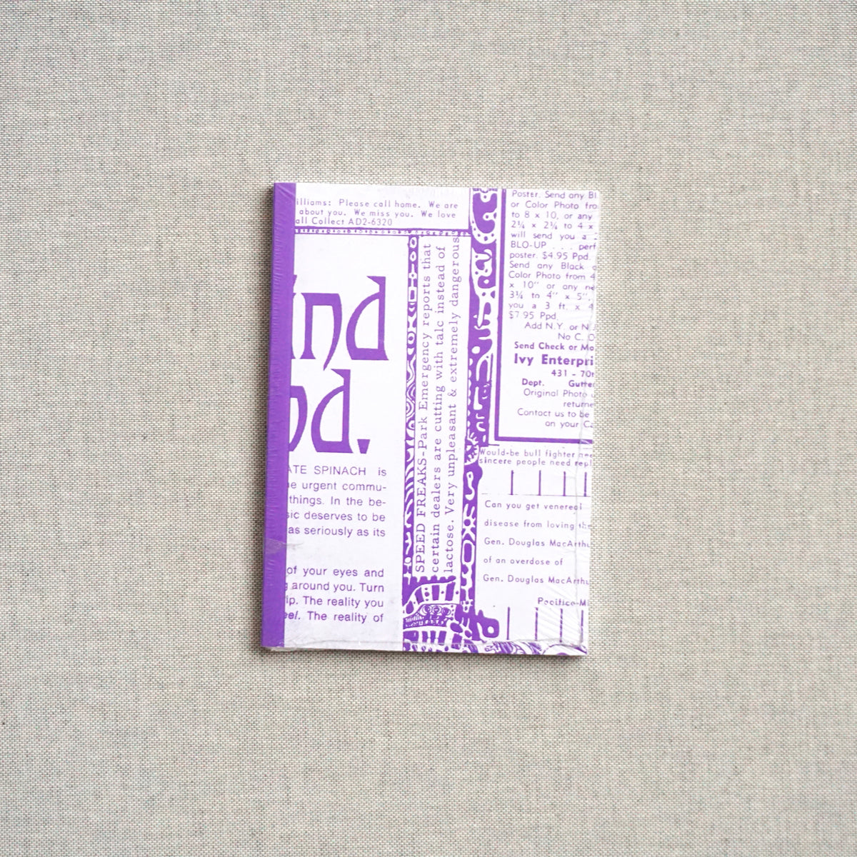 Where to Score presents not the candy-colored prophecies of various gurus, but a quieter, more revealing corner of the paper—its classified section. There, surrounded by advertisements for drummers, carpenters and head shops, are the desperate pleas of parents seeking wayward children. “Will you trust me enough to call collect and let me know you’re alright?” Elsewhere, beat poet Michael McClure needs a harp and the Sexual Freedom League is hungry for recruits. The diminutive entries speak volumes to the times, showcasing an honest, immediate and lesser-known chapter in the era’s history.